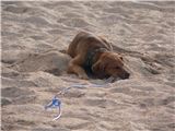 Dog sleeping on the beach